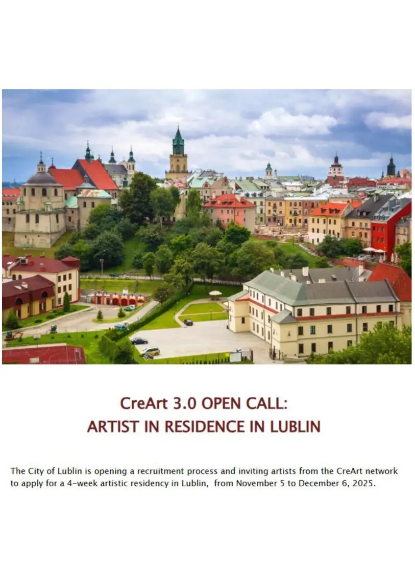CreArt 3.0 OPEN CALL:ARTIST IN RESIDENCE IN LUBLIN The City of Lublin is opening a ...